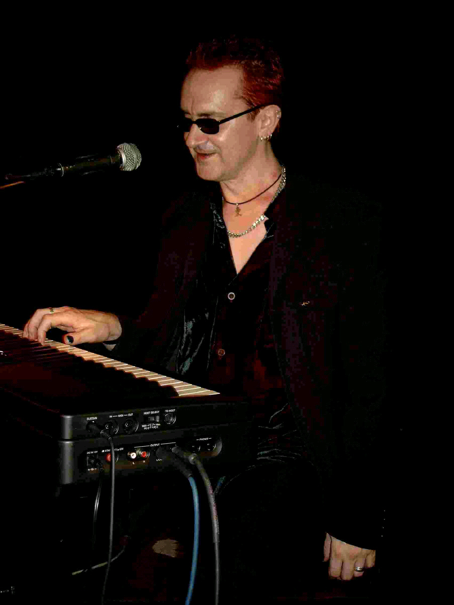 Die kompletten ersten drei bis vier Songs verbrachte er überwiegend mit geschlossenen Augen oder zumindest auf den Boden starrend. Die Beine zuckten unruhig hin und her und seine Nervosität war ihm sichtlich anzusehen. Eigentlich hatte er keinen Grund dazu, die Fans hatten ihn frenetisch begrüßt und alle wippten und sangen von Anfang an mit. Erst der Wechsel zum Keyboard für "Dragonfly" und "Love" brachte so langsam den Wechsel und er taute allmählich auf. Er stellte fest, dass es heute genau so "f*cking cold" war, wie beim letzten Mission Konzert in Hamburg. Als er dann auch noch "Tower Of Strength" anstimmte und unser Chor immer lauter wurde, war das Eis endgültig gebrochen. Das Publikum bestand eh überwiegend aus Alt-Fans ab 30 und die kennen bekanntlich fast jeden Text. Übrigens im Gegensatz zu Wayne, der sich z.B. für "Love" die wichtigsten Stichpunkte vor`s Keyboard gehängt hatte ;) Wayne witzelte herum, antwortete auf alle möglichen Kommentare aus der Menge und lobte mehrmals unsere Chorqualitäten, wir würden sogar die Engländer locker schlagen - yeah! Zeitweise kam man sich zwar vor wie bei den Fischerchören, aber das ist jetzt wirklich nicht abwertend gemeint.