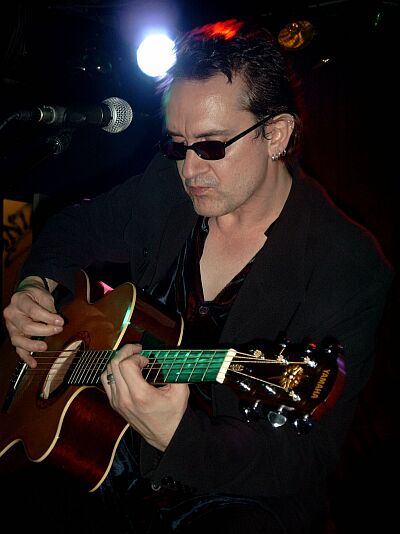 Nun, ein Jahr später, steht Wayne Hussey auf der Bühne der Röhre. Allein, um die Songs seiner Band nur auf der Akustikgitarre und dem E-Piano zu interpretieren. Klingt das nicht spannend? Muss das nicht jede Menge Leute hinter dem Ofen hervorlocken? Ein charismatischer Musiker mit einer bewegten Vita, der solo die Lieder einer der renommiertesten Bands aus dem Independentbereich präsentiert? Und dann blickt man in die Runde und sieht, dass gerade fünfzig Zuschauer gekommen sind. Demnächst kann man Wayne Hussey wahrscheinlich für Grillpartys buchen, zur romantischen Begleitung am abendlich knisternden Lagerfeuer. Wenn"s einmal soweit ist, sollte man beherzt zugreifen. Denn das, was er am Montagabend - völlig unverdient - in der Röhre nahezu unter Ausschluss der Öffentlichkeit gezeigt hat, war sehr hörenswert. In einem sauberen, fein klingenden und technisch versierten Gitarrenstil spielt Hussey, in bester Stimmung (hätte man von dem alten Düstermann gar nicht erwartet) und zum allseitigen Amüsement auch noch auf Zuruf.