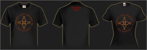 Für die Farewell Tour 2008 von The Mission entstand die Idee, ein spezielles T-Shirt für die deutschen Fans zu entwerfen. Die Vorderseite zeigt das Mission Logo mit dem Text "Germany says farewell to The Mission" und auf der Rückseite befindet sich ein kleines Label mit den Adressen der Webseiten, die offensichtlich ein wenig zum Zuhause der deutschen Fans geworden sind. Die Motive werden jeweils durch Siebdruck (2 Farben) aufgebracht, was eine hohe Farbbeständigkeit verspricht.